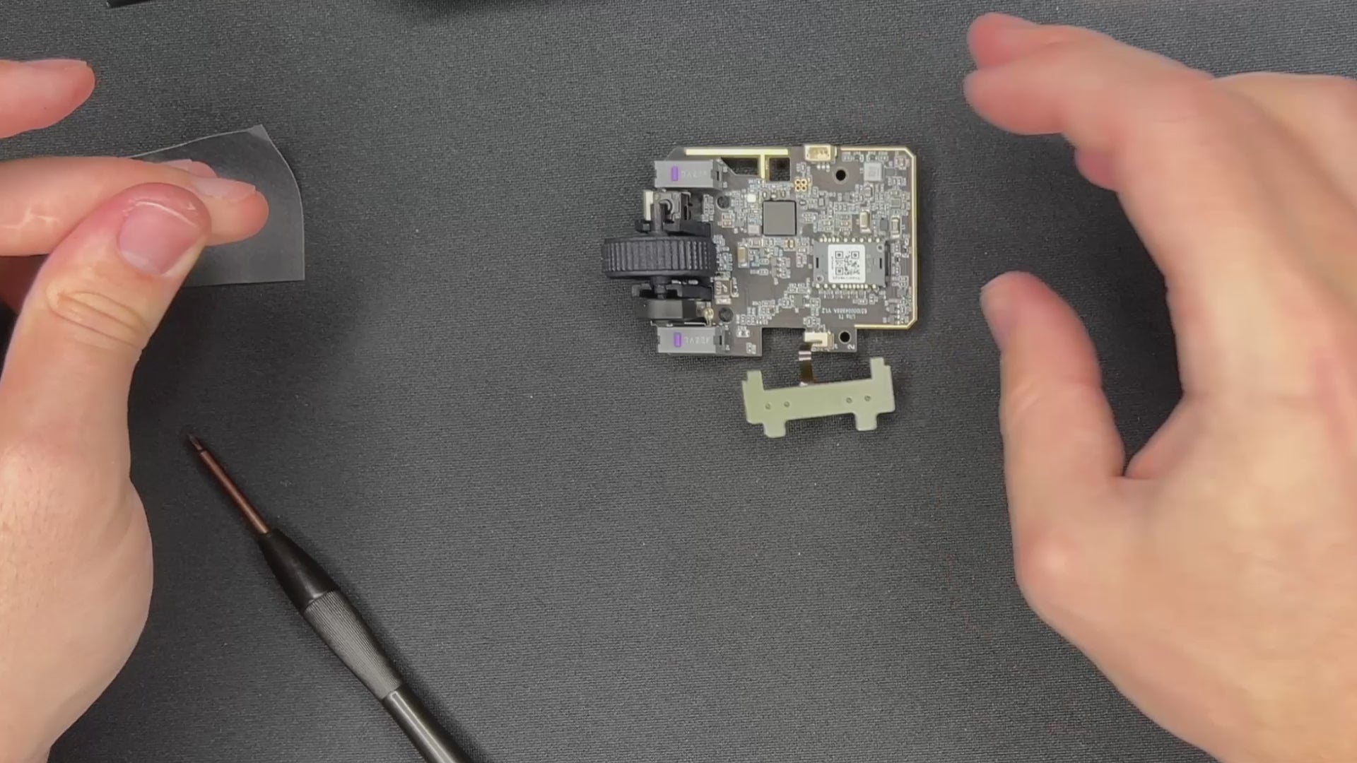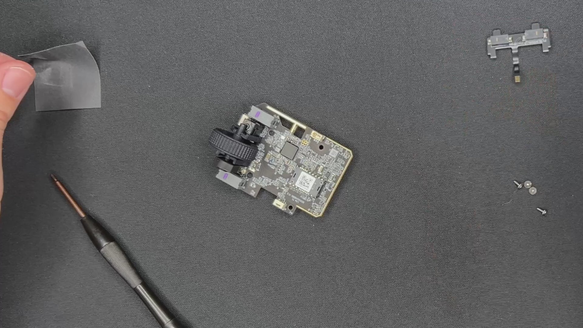 - Use your screwdriver to further insert the side button PCB.