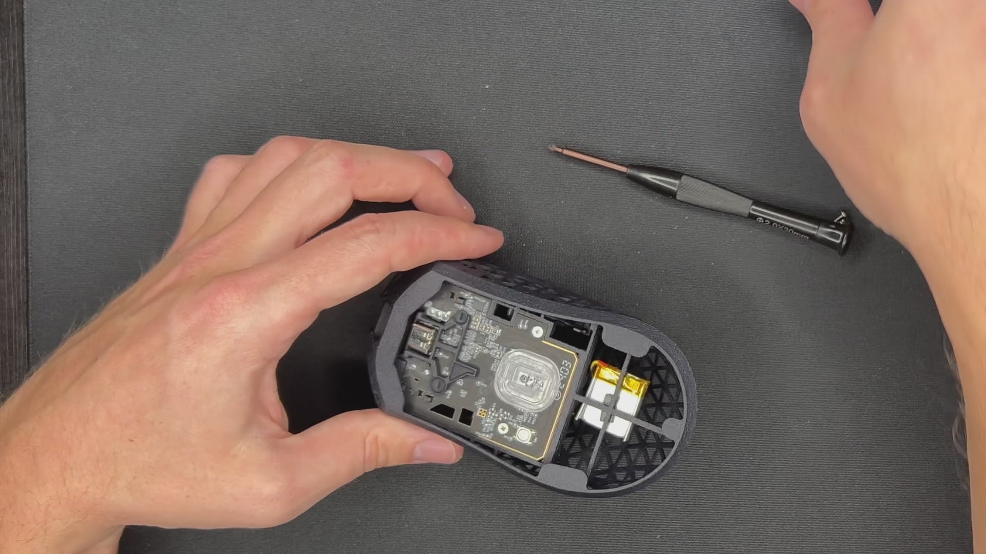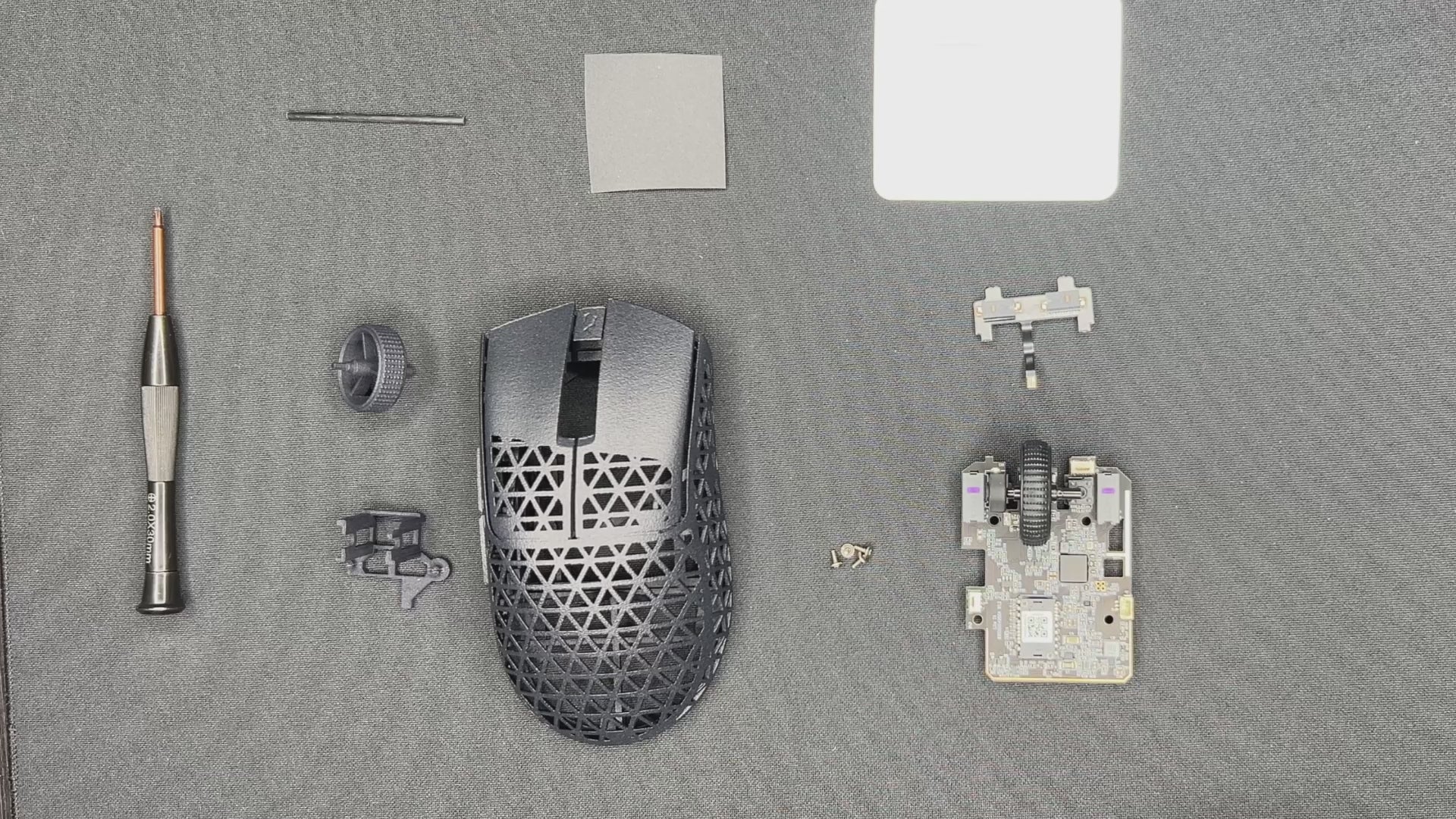 - Start with the mouse wheel holder. Use the sanding paper and a screwdriver. Don't use too much pressure.