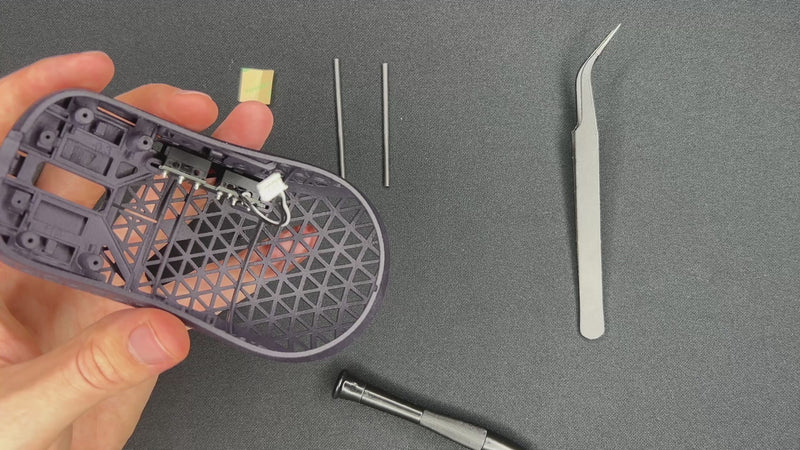 - Use the two long or pointy screws (depending on the mouse version) for the tension system in the front.
