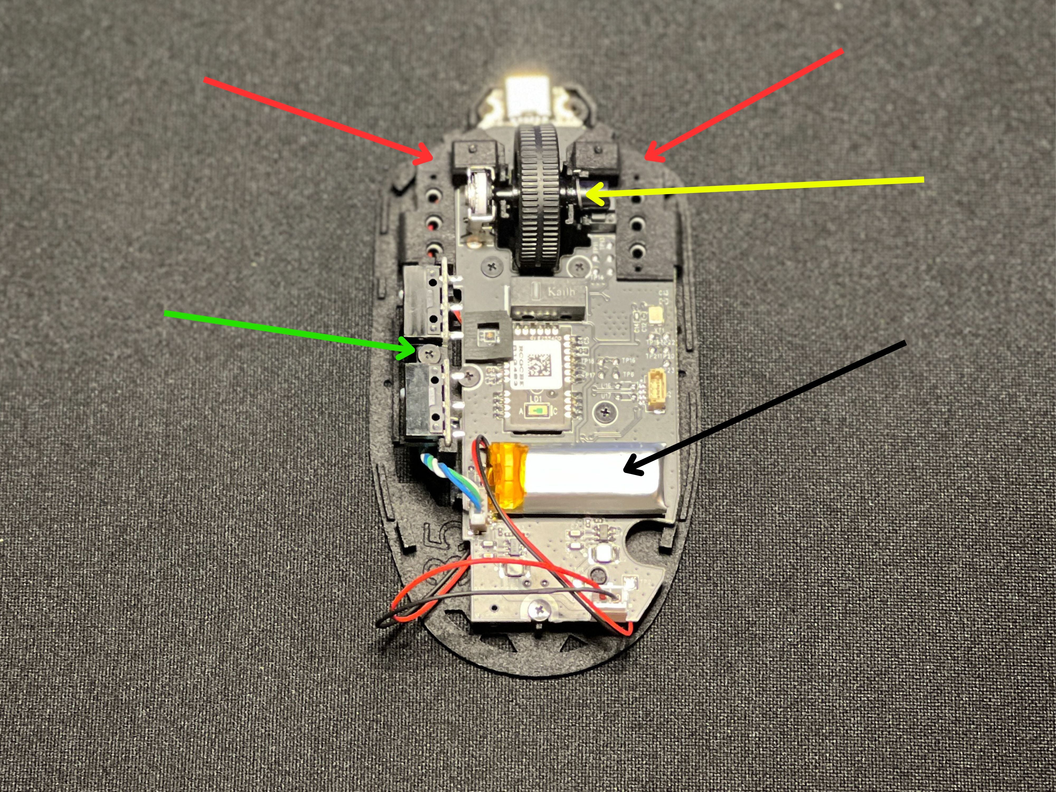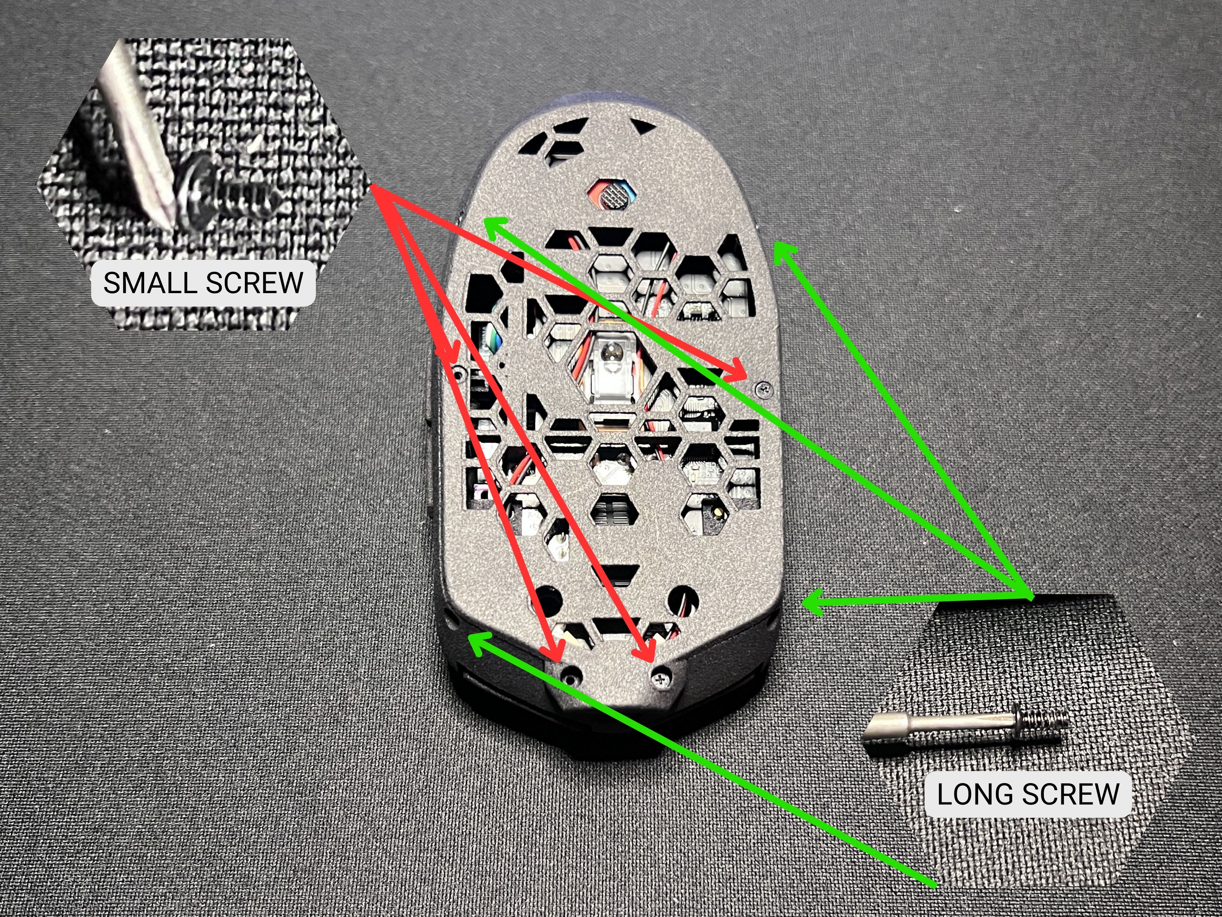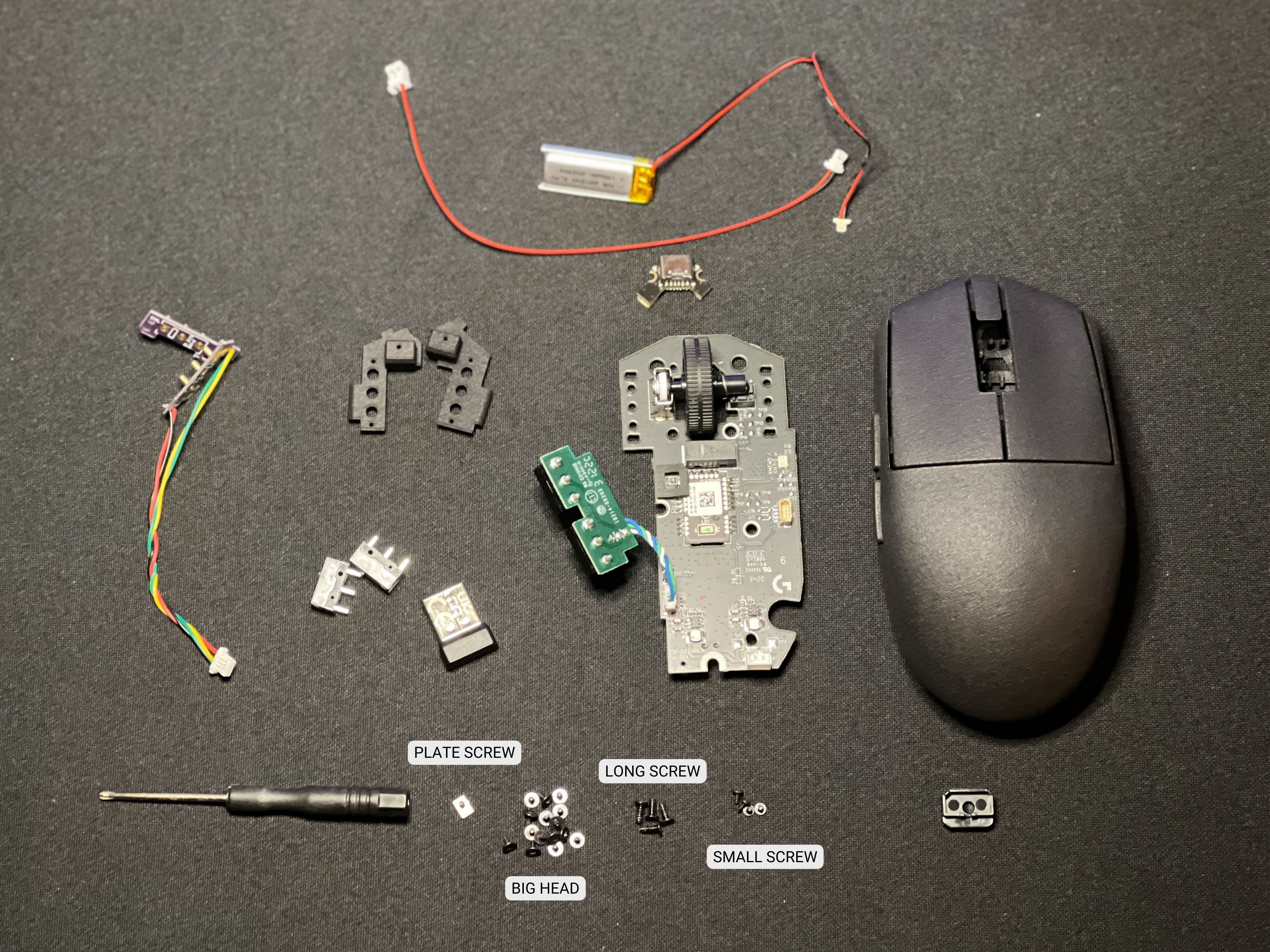 To calibrate the pre-travel, turn the screws in the clips to the left or right and pull down the mouse buttons or make them less sensitive. This works on G305 and Superlight based mods.