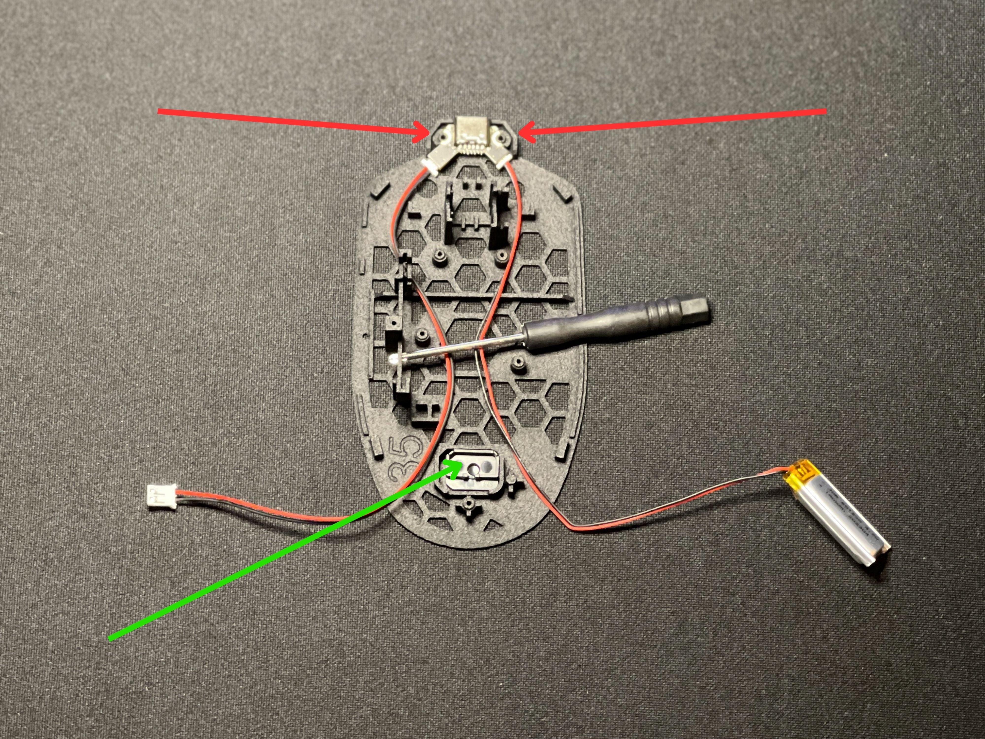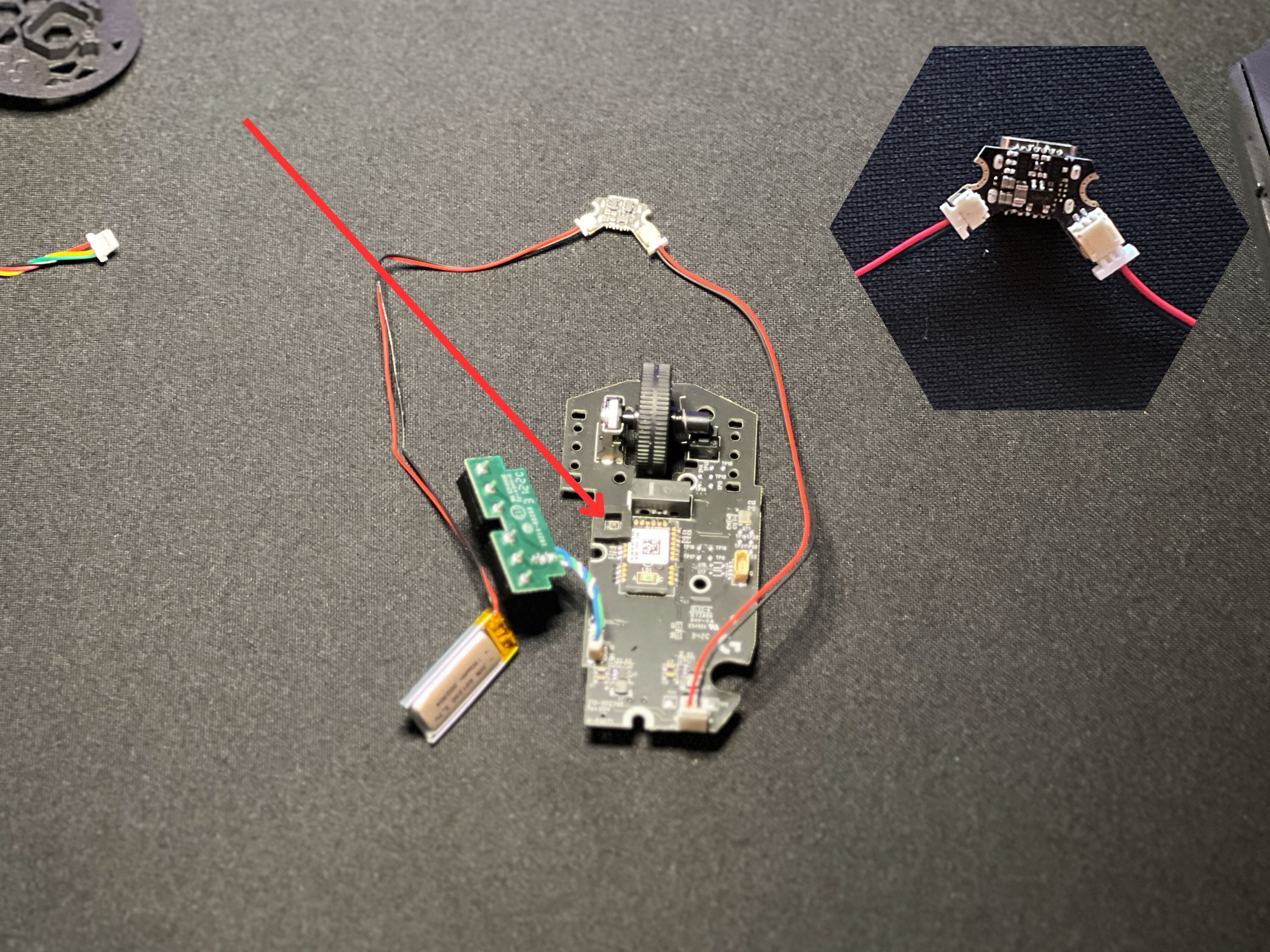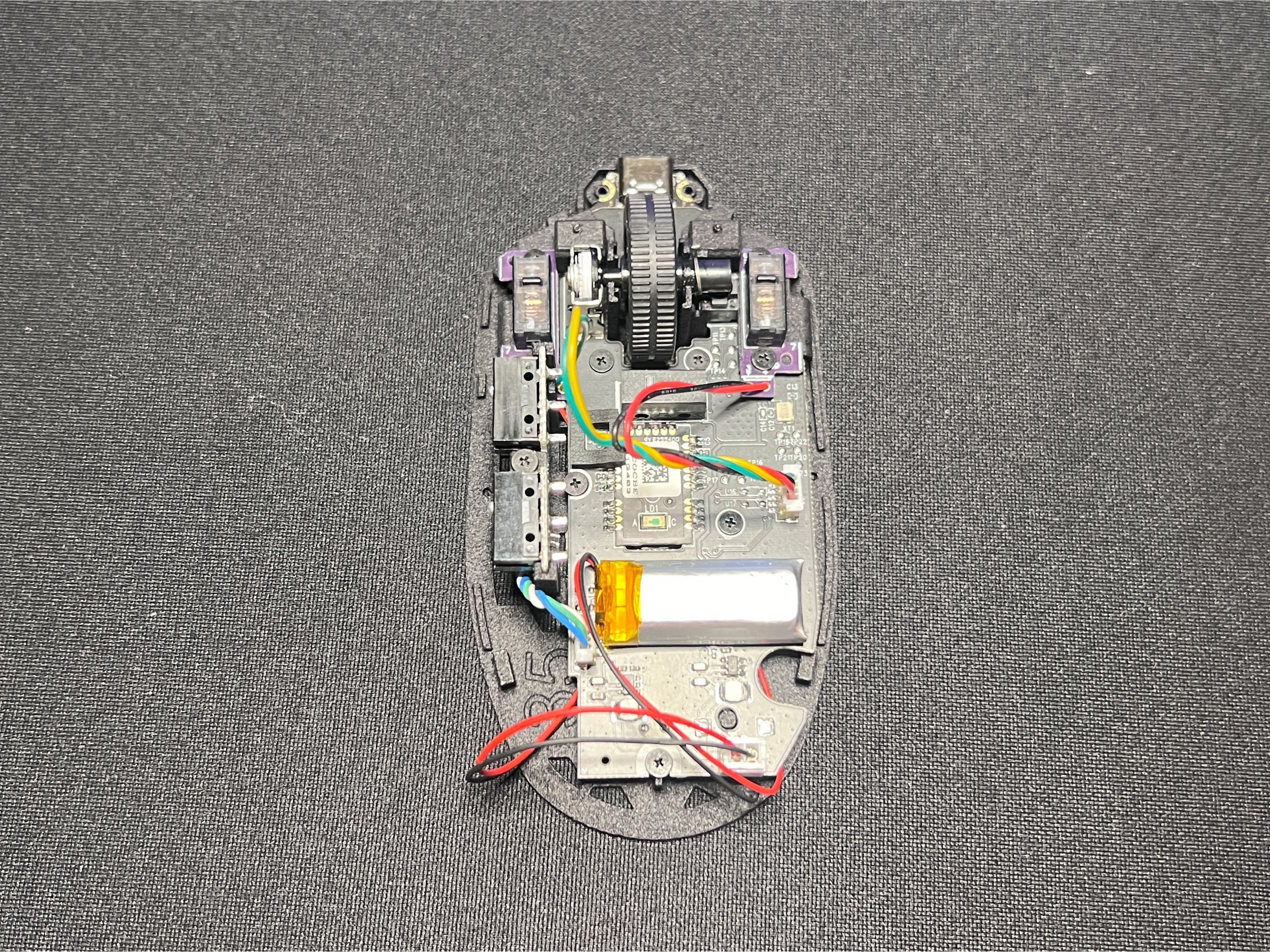 Connect the cables with the USB PCB. Turn on the mouse and check if it is connected properly - a blue light should appear.