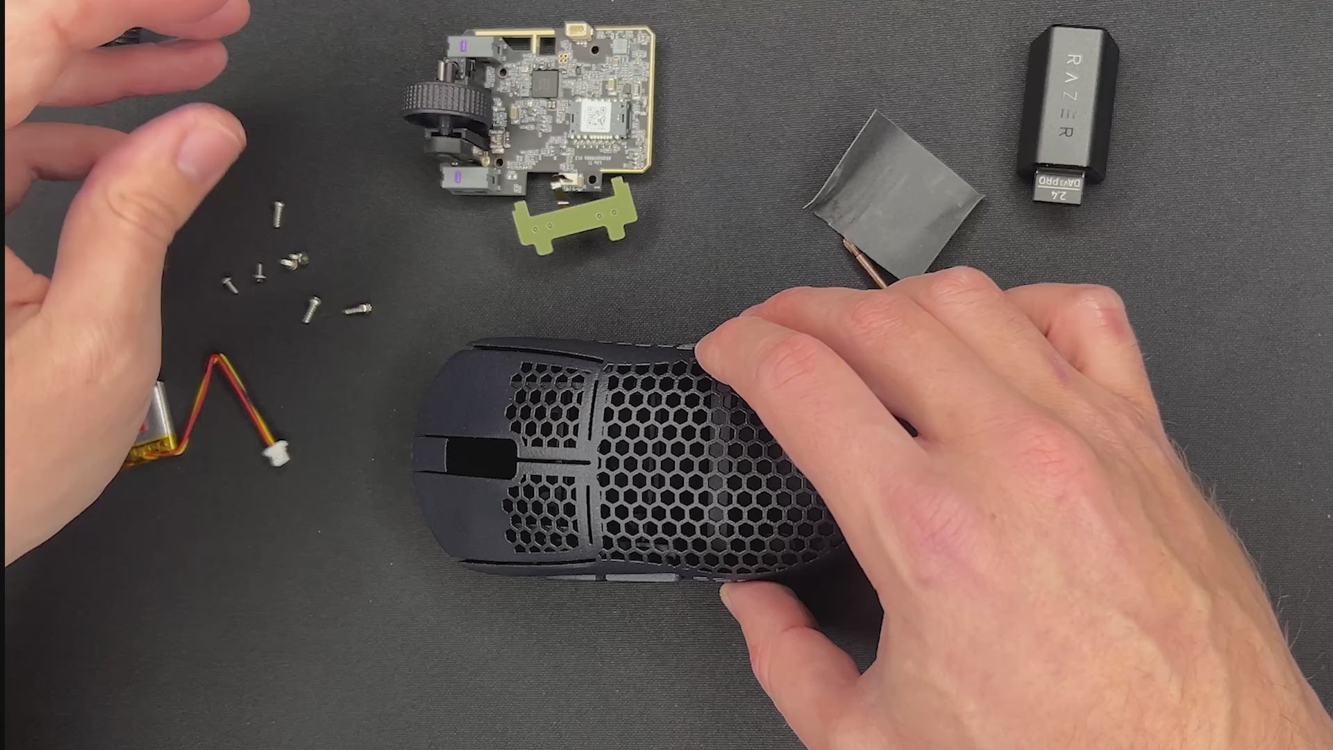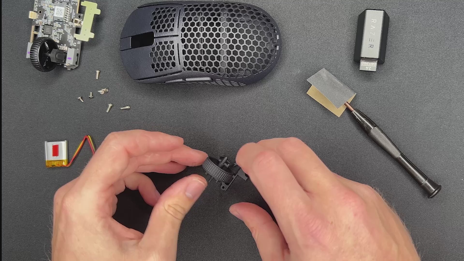 - Install the mouse wheel holder. It should be above the USB-C charging slot.