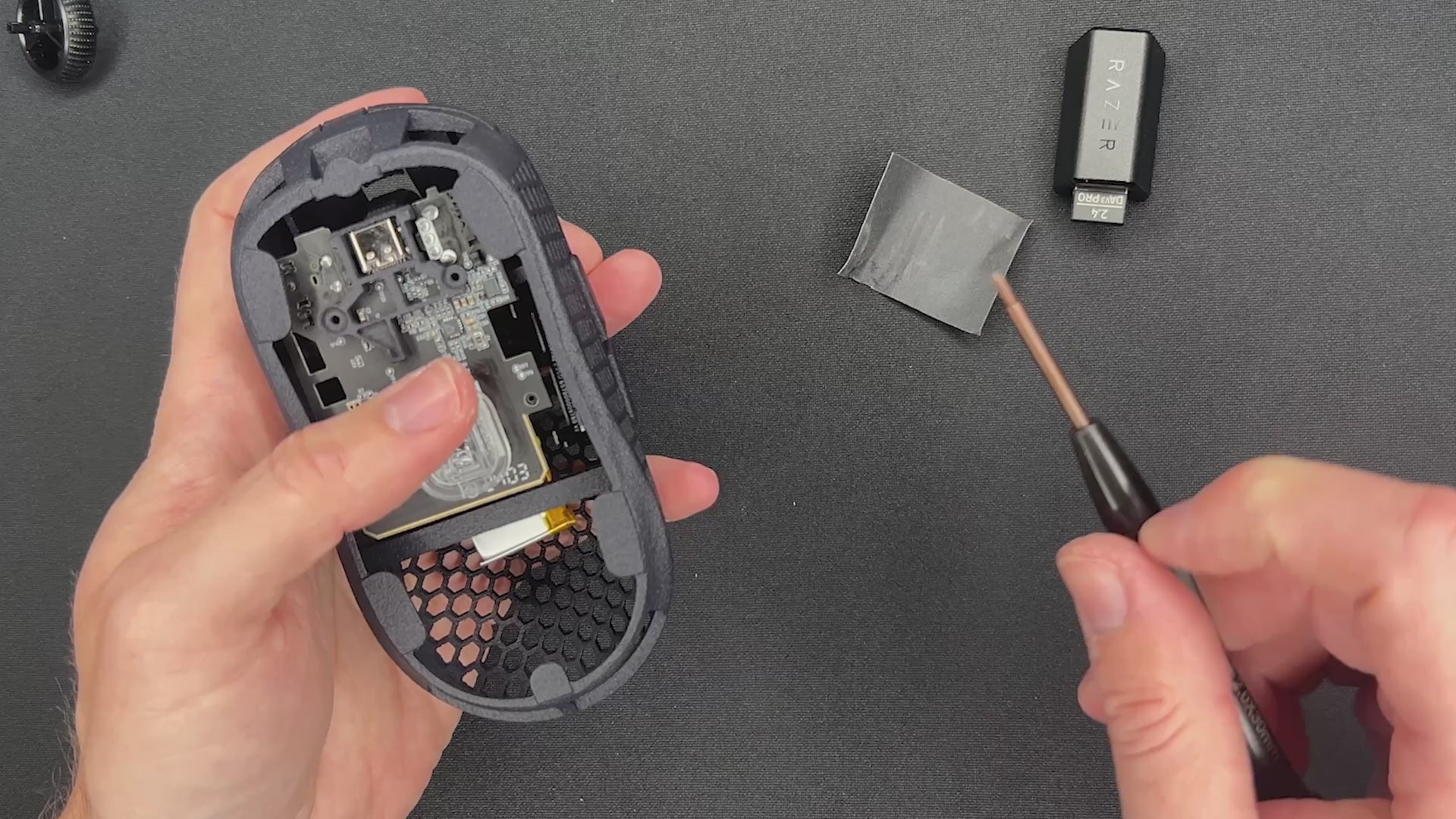 - Check if the clicks work. If you notice that there is a gap between the pins that are touching the PCB in the front, you can apply the spacer that are part of the Mod-Kit to get rid of it. This will greatly improve the click feeling.
