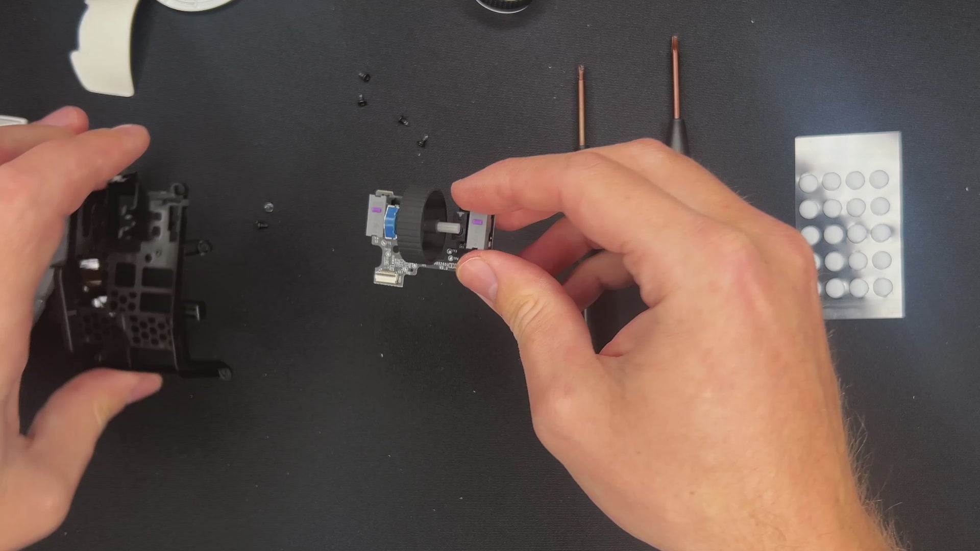 - You will find the mouse wheel PCB on top.