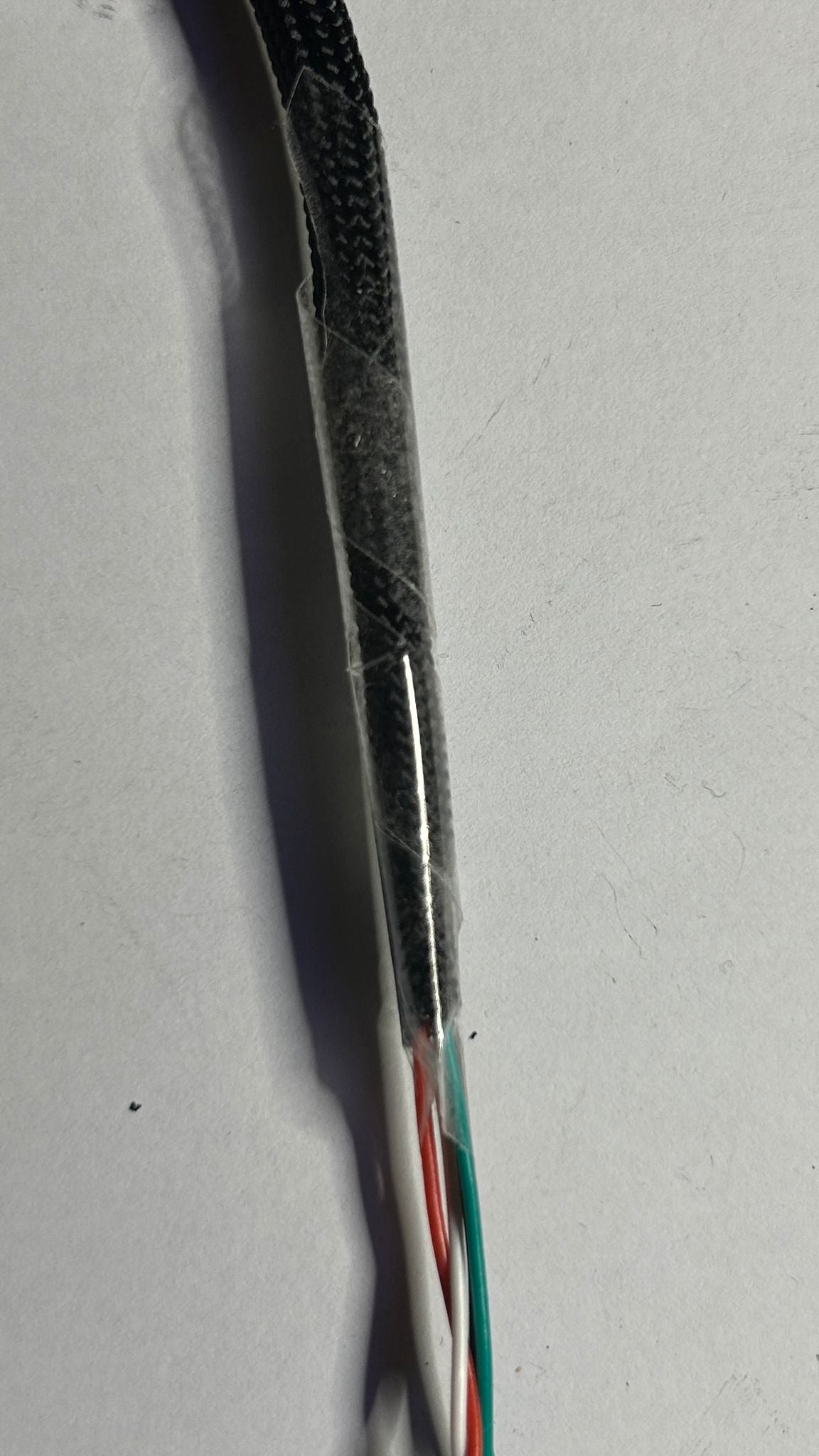 You might need to widen the hole and add scotch tape on the cable to get it through. Use a lighter for the shrink tubing.