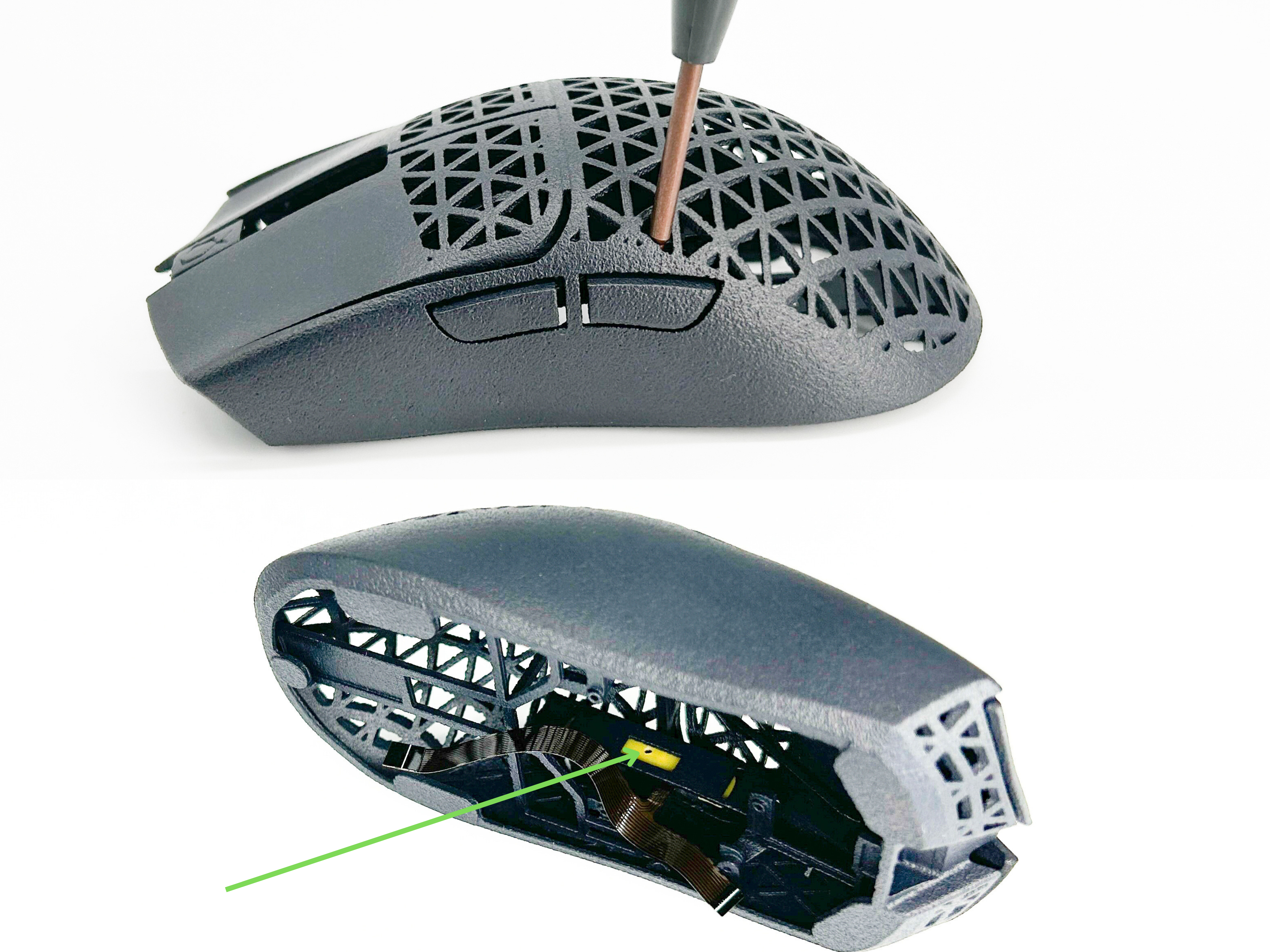 If you want to remove the side button PCB, you can use your screwdriver in these two spots. Either push it down from the top, or push it out using that small hole in the PCB.
